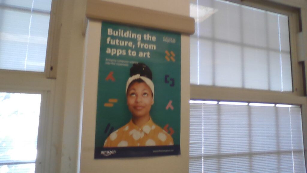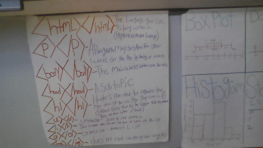 The Code.org curriculum offers a lesson plan for each lesson and provides a perfect alignment with the CSTA Standards for CS Teachers. You can find a complete data base of the lesson plans, standards alignment, visuals and slides for class, and a list of activities for this unit here . When scanning through the standards listed in the CSTA Standards for CS teachers , I do not see one that was not covered. The curriculum itself and slides hit most. Others were addressed via the classroom environment and reenforcement of teacher actions. The assignments on code.org allow for student selection, personal expression, the freedom to code on things that interest you, and much much more. In addition, there are specific lessons geared around things like intellectual property, ethical uses of technology, and how you can use CS in combination with problem solving to tackle real world problems. Above is a picture of the front of my room and below are specific things I have on my walls to help foster some of the ideas not covered directly from a slide, like reinforcment of CS vocabulary and inclusion of minorities in the field. I work hard to make sure every student in my class feels like CS is achievable and possible for them and people like them.